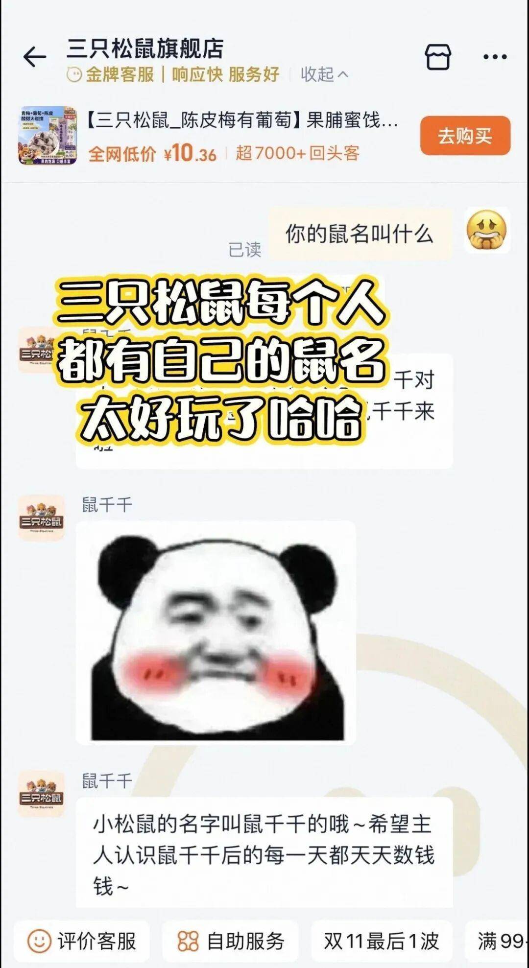 后续网友发现,三只松鼠的客服都以“鼠xx”为自己命名,还会称呼消费者为“主人”。